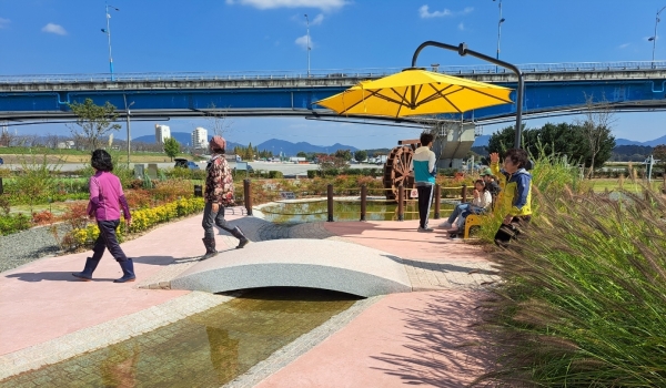 계류정원은 물이 흐르도록 해 계곡 느낌을 주고 강바람정원의 만개한 억새는 가을 정취를 느끼게 한다.