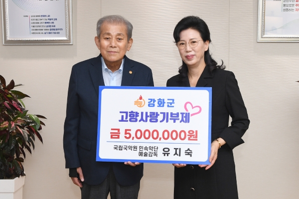 [금요저널] 강화군은 19일 국립국악원 민속악단 예술감독 유지숙 명창이 고향사랑 기부금 연간 최고 금액인 500만원을 기부하며 고액 기부 행렬에 동참했다고 전했다.