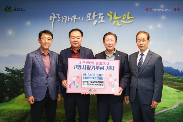 [금요저널] 함안군은 19일 칠원용산농공단지협의회 양성발 회장 및 회사대표자들이 지역사회 발전을 위해 함안군의 고향사랑기부제에 동참했다고 밝혔다.