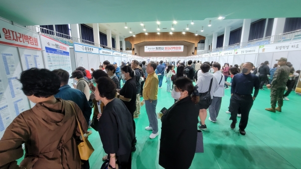 [금요저널] 통영시는 지난 19일 충무체육관에서‘2023년 통영시 일자리박람회’에 400여명의 구직자가 방문해 150여명이 현장면접에 참여했다고 밝혔다.