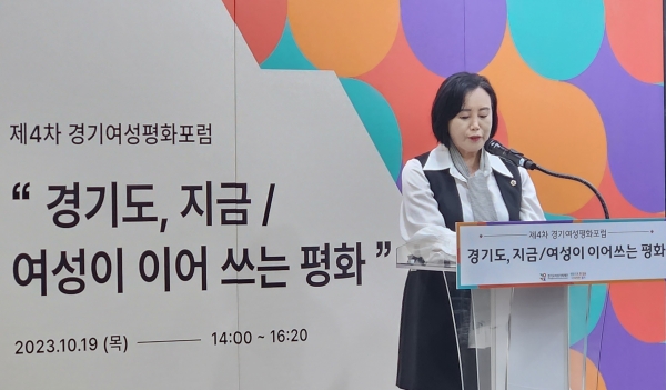 [금요저널] 경기도의회 여성가족평생교육위원회 정윤경 의원은 19일에 경기여성비전센터에서 열린 ‘제4차 경기여성평화포럼’에 참석해, 여성과 평화를 응원했다.