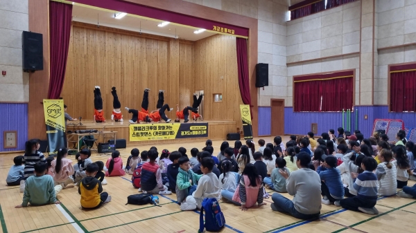 [금요저널] 비보이단 갬블러크루는 지난 18일 일상 속 문화예술 향유 기회를 확대하기 위해 청소년성장지원드림톡 사회적협동조합에서 위탁 운영하는 청소년 휴카페 ‘개울가’와 함께 양평군 개군면에 있는 개군초등학교를 찾아 공연을 펼쳤다.