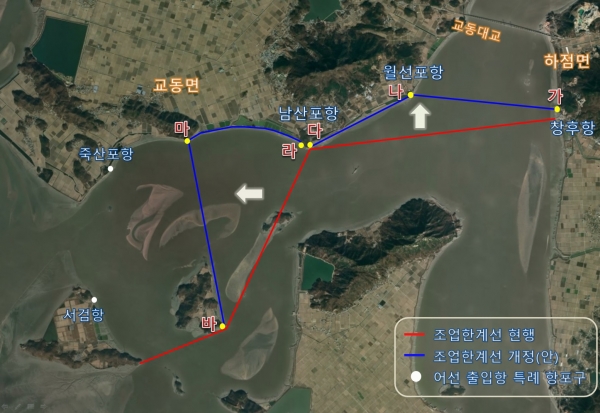 안보상의 이유로 죽산포항, 서검항은 특례조항으로 출입항로가 신설돼 ‘조업한계선 이북에 위치한 항포구로 정한 어선이 해당 항포구를 출입항하는 경우’에는 자유롭게 출입항할 수 있도록 허용됐다.
