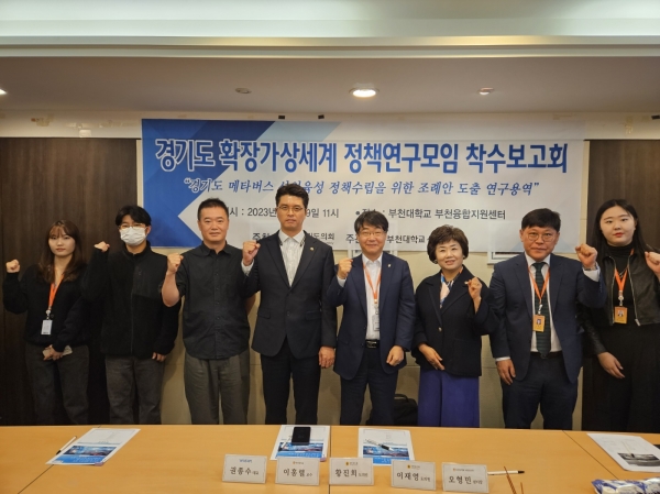 [금요저널] 경기도의회 경기도 "확장가상세계 정책연구모임"은 19일 부천대학교 부천융합지원센터에서 ‘경기도 메타버스산업 육성방안 및 조례안 도출 연구’를 위한 정책연구용역 착수보고회를 개최했다.