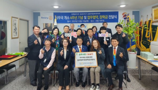한편 국제로터리3600지구 남양주동부로타리클럽은 지역의 소외되고 어려운 이웃을 위해 장학금 지원 등의 사업을 추진하고 있으며 지역사회 복지 발전을 위해 남부희망케어센터와 함께 취약계층을 위한 활동을 펼칠 예정이다.