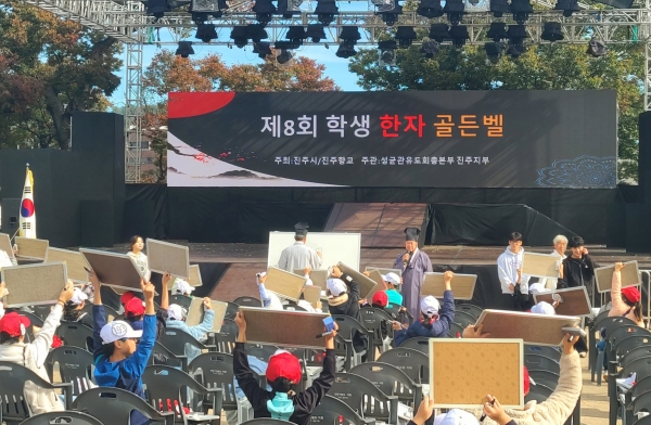 [금요저널] 지난 22일 진주성 내 임진대첩 계사순의단 앞 특설무대에서 참가자 및 관람객 등 500여명이 모인 가운데 ‘2023년 학생한자골든벨’이 성황리에 개최됐다.