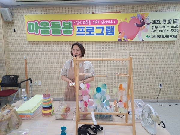 [금요저널] 고성군종합사회복지관은 10월 20일 종합사회복지관 본관 소회의실에서 사회적 고립감, 우울감, 불인감이 있는 고성군민 50명을 대상으로 일상 회복을 위한 심리치유 ‘마음돌봄’ 프로그램을 실시했다.