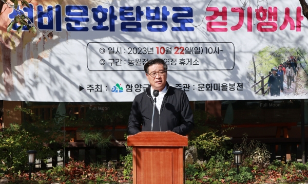 진병영 함양군수는 축사를 통해 “아름다운 자연환경과 문화유산이 공존하는 이곳을 걸으며 우리 선조들의 멋과 풍류를 느껴 보시고 함께 걷는 여정 속에서 새로운 친구와 인연도 만들며 즐거운 시간을 함께 나누길 바란다”고 전했다.