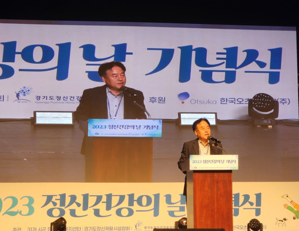 기념식은 1부 ‘정신건강 기념식’과 2부 ‘지-마인드 페스티벌’로 구성됐으며 유영철 경기도 건강보건국장, 이명수 경기도 정신건강복지사업지원단장, 김진일 경기도 정신건강복지센터 가족대표단 대표, 각 시군 복지회관 관계자 및 가족 등이 참석했다.