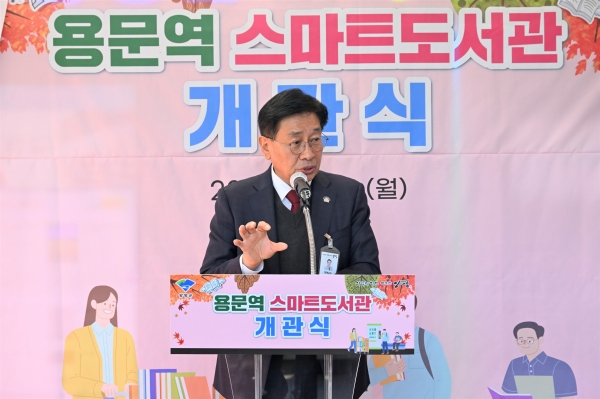 전진선 군수는 기념사에서 “이번에 조성된 용문역 스마트도서관을 통해 군민들이 출퇴근길이나 등하굣길을 책과 함께하실 수 있길 바라며 앞으로도 군민 모두가 언제 어디서나 편리하게 책을 접할 수 있는 환경을 만들도록 노력해나가겠다”고 밝혔다.