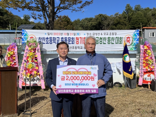 [금요저널] 합천군은 합천 대병면 삼산초등학교 총동문회가 합천군 고향사랑기부제에 동참했다고 24일 밝혔다.