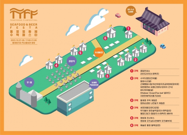본 행사장에서는 버스킹 공연과 통영을 배경으로 촬영한 영화“잘피”,“통영에서의 하루”를 감상할 수 있다.
