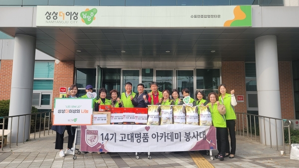 한편 고대 명품 아카데미 14기 봉사대는 지난 2021년부터 나눔의 뜻을 모아 결성된 봉사단체로 남양주시 전역의 어려운 이웃을 돕기 위해 릴레이 후원 활동을 꾸준히 이어오고 있다.
