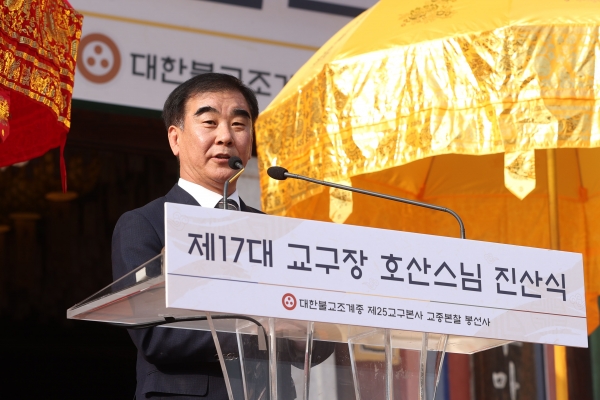 [금요저널] 염종현 경기도의회 의장이 25일 대한불교조계종 제25교구 본사 봉선사 주지 호산스님의 17대 교구장 취임식에 참석해 축하를 전하고 불교계의 ‘호국정신’에 감사의 뜻을 표했다.