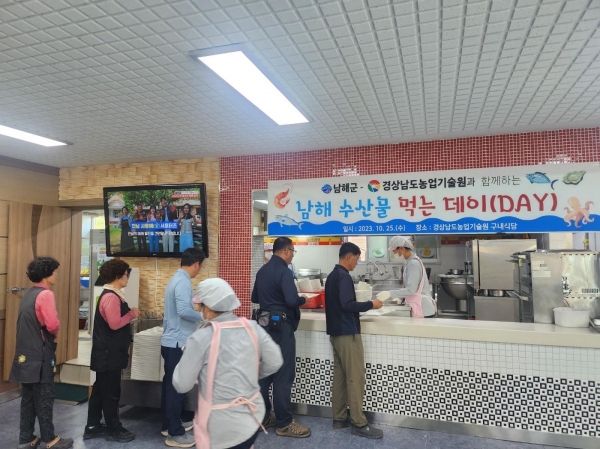 [금요저널] 남해군은 지난 25일 수산물 소비 촉진을 위해 경남농업기술원과 함께하는 ‘남해군 수산물 먹는 데이’를 진행했다고 밝혔다.