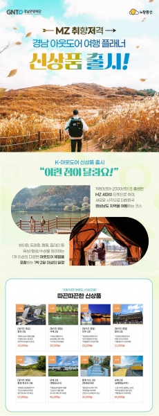 [금요저널] 경남관광재단은 주식회사 노랑풍선과 함께 “MZ 취향저격 경남 아웃도어 여행상품” 기획전을 운영 중이라고 26일 밝혔다.