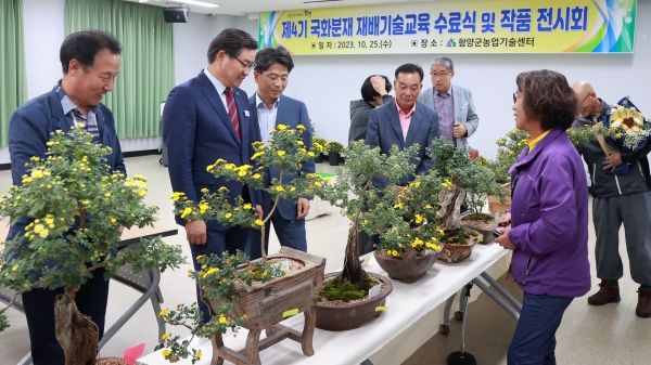 한편 국화분재 수료식이 끝난 25일부터 11월 말까지 군청 및 농업기술센터 로비에서 교육생들의 작품전시회가 열릴 예정이다.