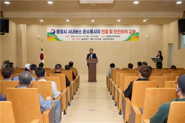 [금요저널] 통영시는 지난 24일 25일 양일간 통제영 역사홍보관 시청각실에서 통영시 3개 운수업체 시내버스 운수종사자 약 130여명을 대상으로 ‘2023년 하반기 시내버스 운수종사자 친절 및 안전의식 교육’을 실시했다.