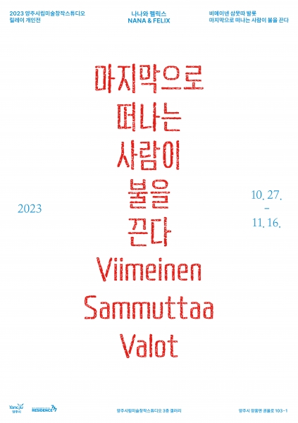 한편 전시가 열리는 양주시립미술창작스튜디오 777레지던스는 매년 입주작가들의 역량을 알리고자 릴레이 개인전을 개최하고 있으며 오는 12월 양주시립장욱진미술관에서는 6기부터 8기까지 참여하는 입주작가 단체전 ‘체크아웃2023’을 진행할 예정이다.