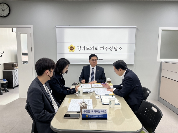 [금요저널] 경기도의회 경제노동위원회 이용욱 의원은 27일 파주상담소에서 경기도시장상권진흥원 북서센터 김양수 센터장 및 관계자로부터 주요 업무에 대해 보고받는 자리를 가졌다.