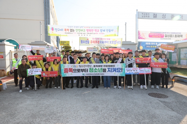 [금요저널] 고성군은 10월 27일 이른 오전부터 철성중학교와 고성중학교 정문 일대에서 ‘등굣길 청소년 문제 예방 캠페인’을 진행했다.