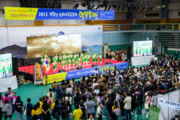 [금요저널] 남해군과 남해교육지원청이 공동으로 추진하고 있는 행복교육지구의 성과를 공유하고 그 결실을 나누는 ‘2023 보물섬 남해교육공동체 행복축제’가 지난 26일 남해실내체육관에서 열렸다.
