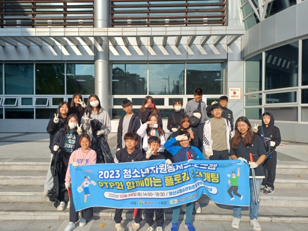 [금요저널] 양산시청소년회관은 지난 28일 청소년환경봉사동아리 P.T.P 의 주도아래 자원봉사프로그램인 ‘쓰개팅’’을 실시했다.