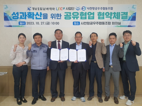 [금요저널] 경남도립남해대학 링크3.0사업단이 27일 사천항공우주협동조합과 산학연협력 선도전문대학 육성사업 성과확산을 위한 공유·협업 업무협약을 체결했다.