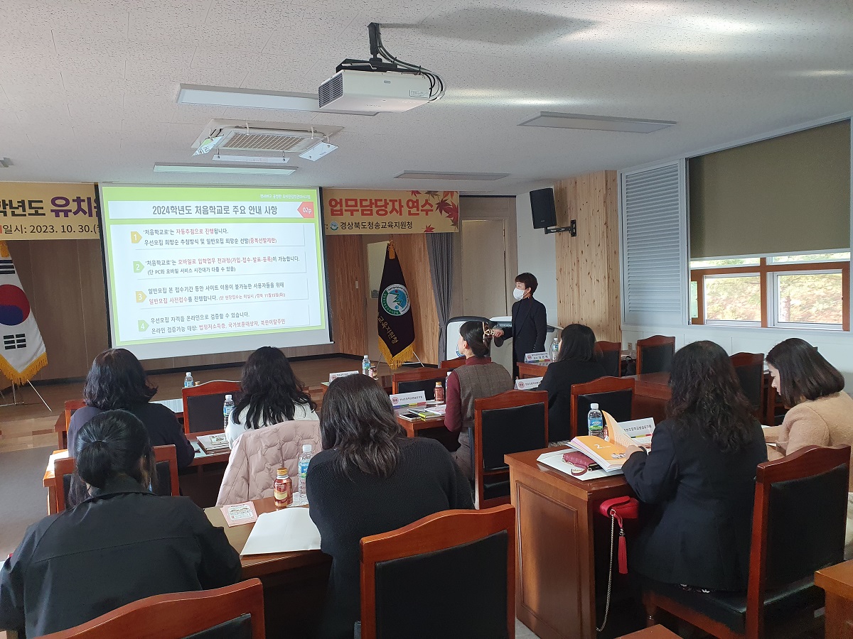 □ 경상북도청송교육지원청은 10월 30일 청송교육지원청 대회의실에서 유치원 입학관리시스템(처음학교로) 업무담당자 연수를 실시하였다.