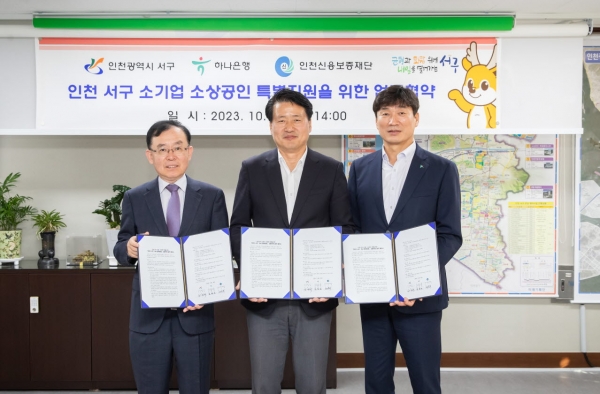 협약식에는 강범석 서구청장을 비롯해 김창근 하나은행 기관영업그룹 부행장, 전무수 인천신용보증재단 이사장이 참석했다.