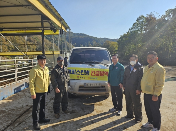 [금요저널] 합천군은 지난 30일 경남에서 소 럼피스킨병이 첫 발생됨에 따라 관내 우량암소 농가 및 합천축협 공동방제단 방역실태 현장을 점검을 실시했다.