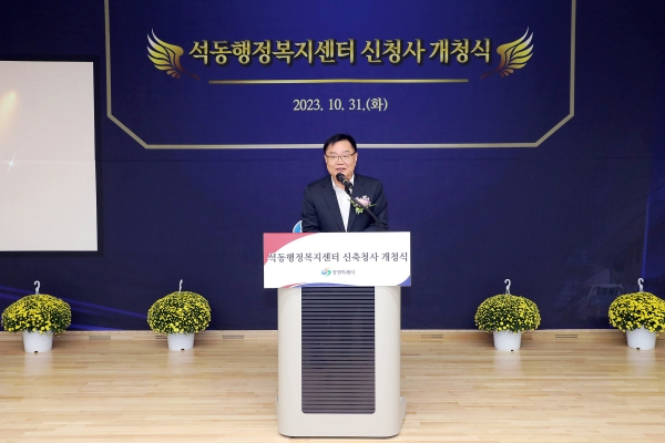 석동 기존 청사는 34년 전 건립되어 건물이 낡고 공간이 협소해 주민들의 신청사 건립 요구가 지속해서 제기되어 지난 2022년 3월 총 84억원의 사업비를 투입해 신청사 건립공사를 시작, 지난 9월 준공했다.