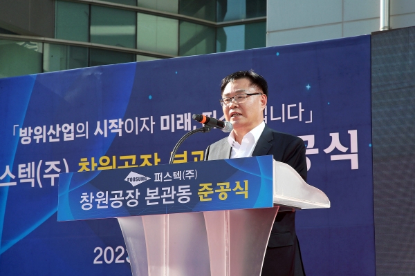 [금요저널] 홍남표 창원특례시장은 31일 방위전문산업체의 대표적 기업인 퍼스텍의 창원공장 본관동 준공식에 참석해 축사를 전했다.