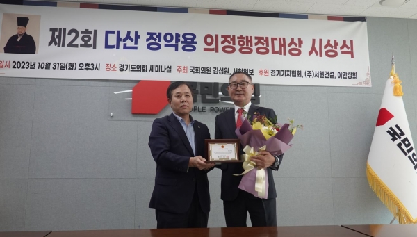 [금요저널] 경기도의회 건설교통위원회 김영민 도의원은 31일 오후 2시, 서현일보 주최로 열린 ‘제2회 다산 정약용 의정·행정대상’ 시상식에서 광역의원 부문 의정대상을 수상했다.