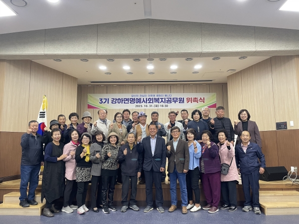 김석만 강하면장은 “무보수·명예직임에도 명예사회복지공무원으로 신청해 주신 지역주민들께 감사드리며 명예사회복지공무원 위촉을 계기로 촘촘한 복지안전망을 구축해 소외되는 이웃이 없도록 노력하겠다”고 말했다.