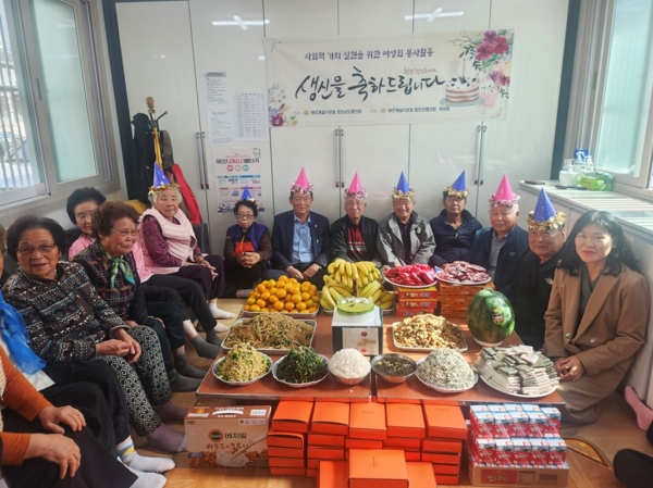 소외계층 어르신을 마을회관으로 초대해 미역국, 불고기, 잡채, 등을 직접 만들어 생신상을 차려서 점심 식사를 대접하며 이웃 간의 따뜻한 정을 나눴다.