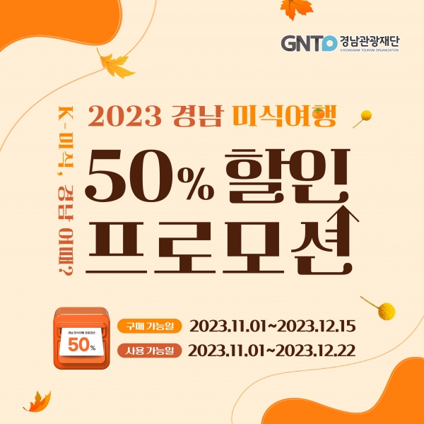 경남미식여행 50% 할인혜택 받고 단풍여행 떠나요