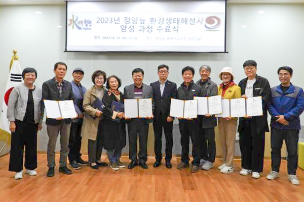 군은 지난 4월 18일 ‘정양늪 환경생태해설사 양성 과정’을 개설하고 1차 기초교육과 2차 심화교육 및 소정의 평가를 거쳐 최종 12명을 선정해 지난달 31일 정양늪 생태학습관에서 수료식을 열었다.