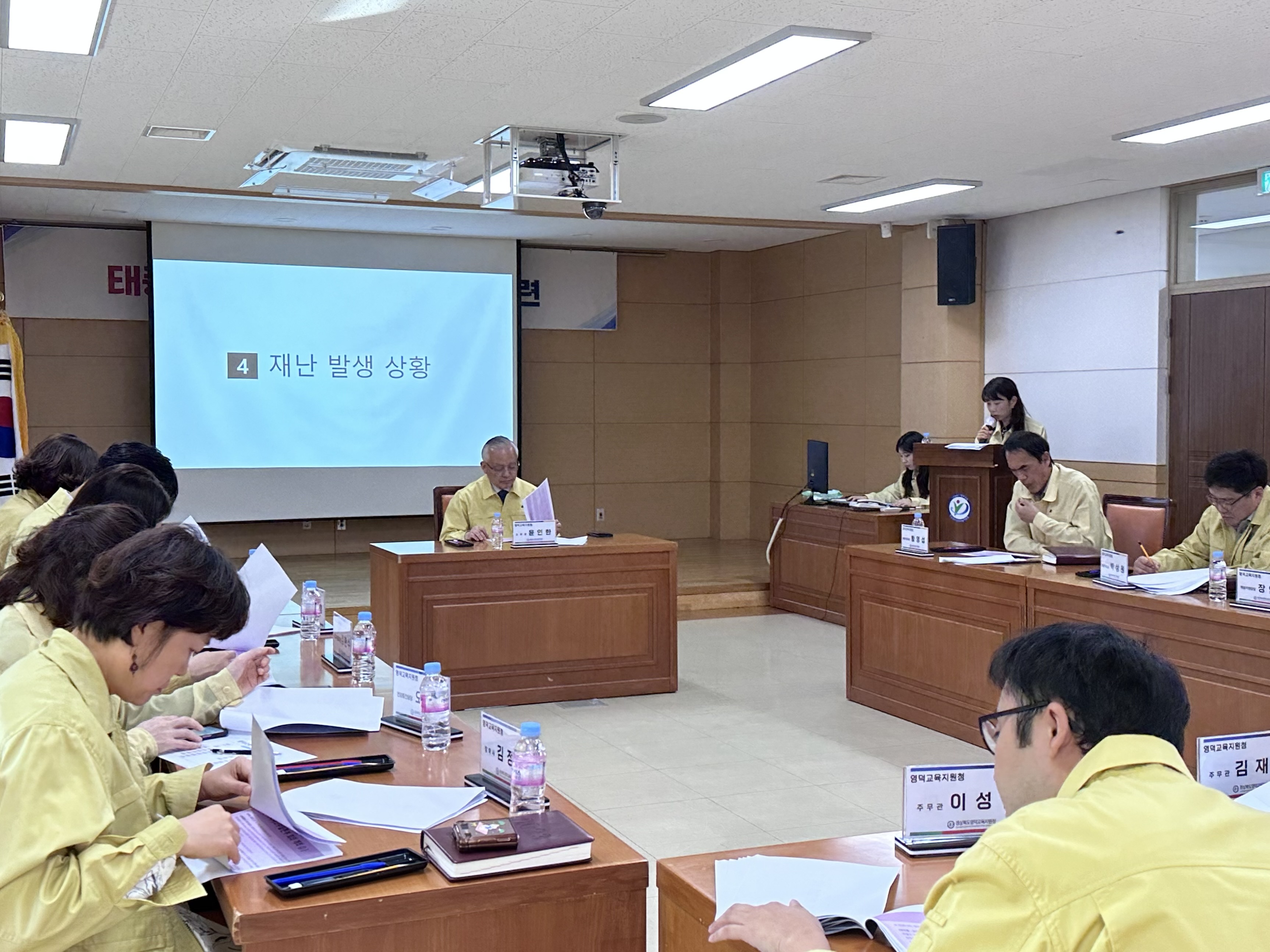 윤인한 교육장은 “태풍은 급작스럽게 닥치는 것이 아니라 사전에 예상 진로를 파악할 수 있는 만큼 사전 준비를 철저히 하여 피해를 최소화하고 반복적인 대응훈련으로 실제 재난 상황에서 학생 및 교직원 등 교육 가족의 안전을 책임져야 한다”고 강조했다.