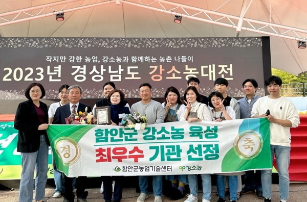 [금요저널] 함안군은 경상남도농업기술원 주관한 2023년 강소농대전에서 ‘최우수 기관’으로 선정되는 영예를 안았다.