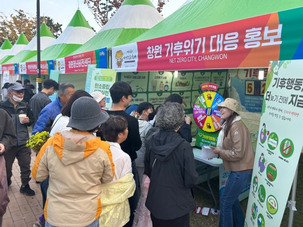 [금요저널] 창원특례시는 ‘제23회 마산국화축제’가 10만여 송이 국화와 완연한 가을의 정취를 만끽하는 관광객들의 방문으로 연일 북적이는 가운데, 기후대기과에서 운영하는 ‘기후위기 대응 홍보관’이 방문객의 눈길을 끌며 풍성한 축제 볼거리가 됐다고 2일 밝혔다.