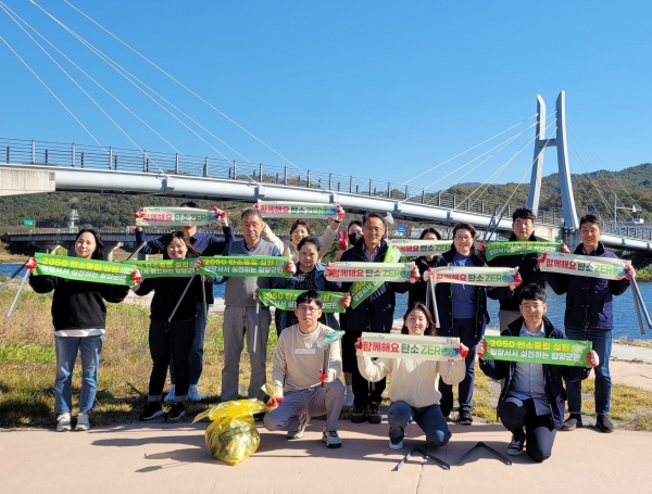 [금요저널] 함양군농업기술센터 농산물유통과는 지난 2일 직원 업무 피로도 해소와 사기진작을 위해 열린 과 한마음 행사에서 탄소중립 실천을 위한 ‘줍깅 캠페인’을 실시했다.