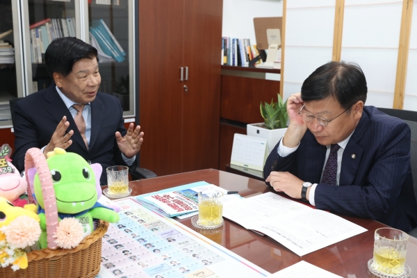 [금요저널] 이상근 고성군수는 2일 정점식 국회의원 사무실을 방문해 국도 77호선 교량 가설을 건의했다.