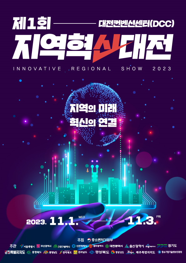 ‘지역혁신대전’은‘지역중소기업 육성 및 혁신촉진에 관한 법률’ 시행 이후 중소벤처기업부, 17개 시·도, 지역혁신기관, 우수 지역중소기업이 한 자리에 모여 지역경제 성장과 일자리를 창출하는 주역이 지역중소기업임을 널리 알리고 지역중소기업 정책 방향과 성공사례에 대해 공유·소통하기 위한 첫 번째 대규모 행사이다.