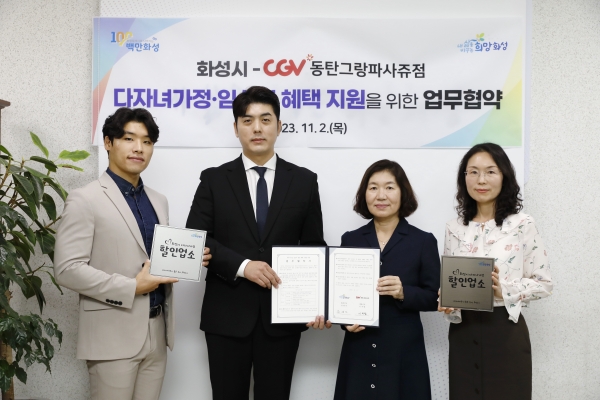 화성시, CGV동탄그랑파사쥬점과 다자녀가정 및 임산부 혜택 지원 협약 맺어