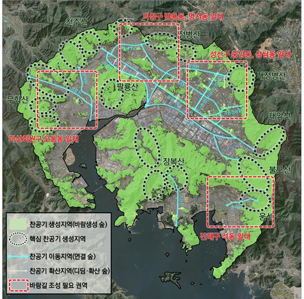 창원특례시 전 지역의 바람길 조성을 공간 정보화해 도시 기후 및 미세먼지 취약지역 분석, 정밀 열 환경 및 바람 환경 분석, 바람길 조성 방안 도출 등의 내용이 우수사례로 평가받았다.