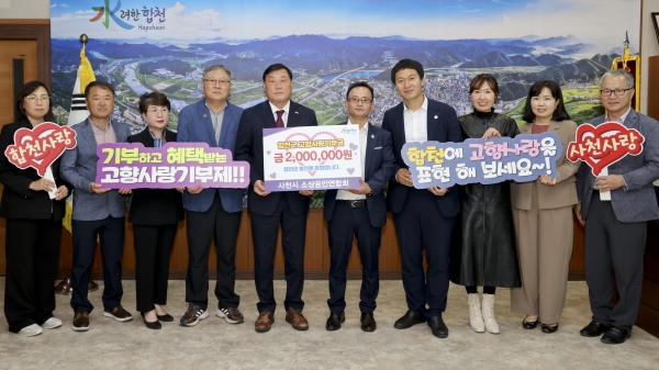 [금요저널]합천군은 합천군과 사천시 소상공인연합회 회원들이 고향사랑기부제의 활성화 및 지자체 간 상생 발전을 위해 서로의 지역에 기부했다고 3일 밝혔다.