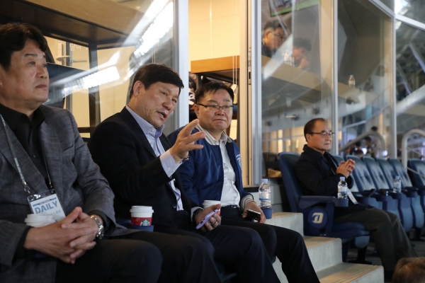 이날 창원NC파크 마산구장을 찾은 홍남표 창원특례시장은 허구연 KBO총재, 이진만 NC다이노스 대표이사 등 야구 관계자와 프로야구 발전방안 등에 대한 환담 후 NC다이노스 팬들과 한마음으로 선수단을 응원하고 한국시리즈 진출을 기원했다.