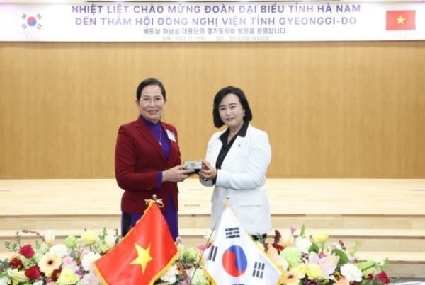 [금요저널] 정윤경 경기도의회 하남성 친선연맹 회장은 1일 경기도의회를 찾은 베트남 하남성 대표단을 접견했다.