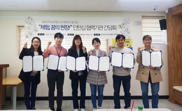 [금요저널] 함안군청소년지원센터 꿈드림은 함안군청소년수련관에 위치한 학교 밖 청소년 전용공간 ‘망고’에서 지역 내 유관기관 대표와 함께 ‘2023년 학교 밖 청소년 인턴십 협력기관 간담회’를 실시했다고 3일 밝혔다.